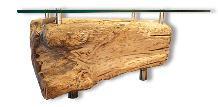 Bei der Auswahl und schon bei der Fertigung der einzelnen Möbelstücke und Accessoires richtet sich der Blick stets auf die individuellen Formen der Natur, denn gerade sie verleihen vielen Möbelstücken ihren ganz eigenen Charakter. In Kombination mit klaren Linien, Metall und Glas entsteht so eine kontrastreiche Wirkung aus Ruhe und Bewegung.