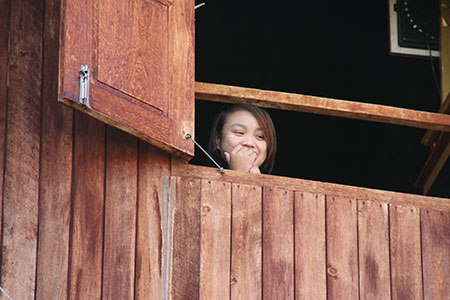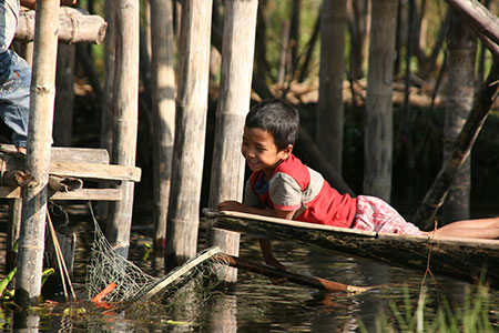 Schon während des gesamten Aufenthalts in Burma beeindrucken uns die Menschen mit einer großen Freundlichkeit und Aufgeschlossenheit. Mit und über die Besucher wird viel gelächelt. Die Menschen des Sees interessieren sich genauso für die ausländischen Gäste wie wir uns für ihre Kultur interessieren. Schon ein von uns geknipstes Foto zaubert dem Porträtierten ein Lachen aufs Gesicht, und auch das traditionelle Auftragen der bräunlichen Thanaka-Paste, die aus Sandelholzpulver gemacht wird und uns vor Sonnenbrand und Moskitos schützen soll, liefert Grund zur Heiterkeit.