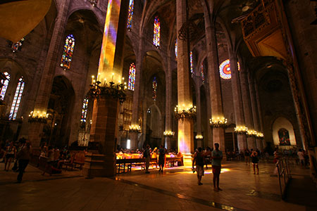 Fotos: Tom RichterZur Grundsteinlegung kam es bereits um 1230 durch König Jaume I. Sein Sohn beauftragte ab 1306 den eigentliche Bau der Kathedrale, die auch als Mausoleum für das mallorquinische Königshaus fungierte. Der Bau des Kirchenschiffs wurde 1587 abgeschlossen, das Haupt-portal wurde 1601 geweiht. Die Arbeiten an der Hauptfassade wurden allerdings erst Anfang des 20. Jahrhunderts beendet. Mit über 109 m Länge, 33 m Breite und dem 44 m aufragenden Hauptschiff zählt die Kathedrale heute zu den wichtigsten Bauwerken gotischer Stilrichtung.
